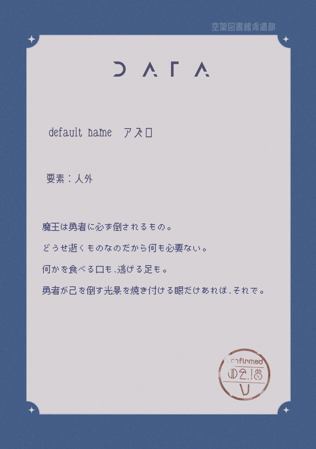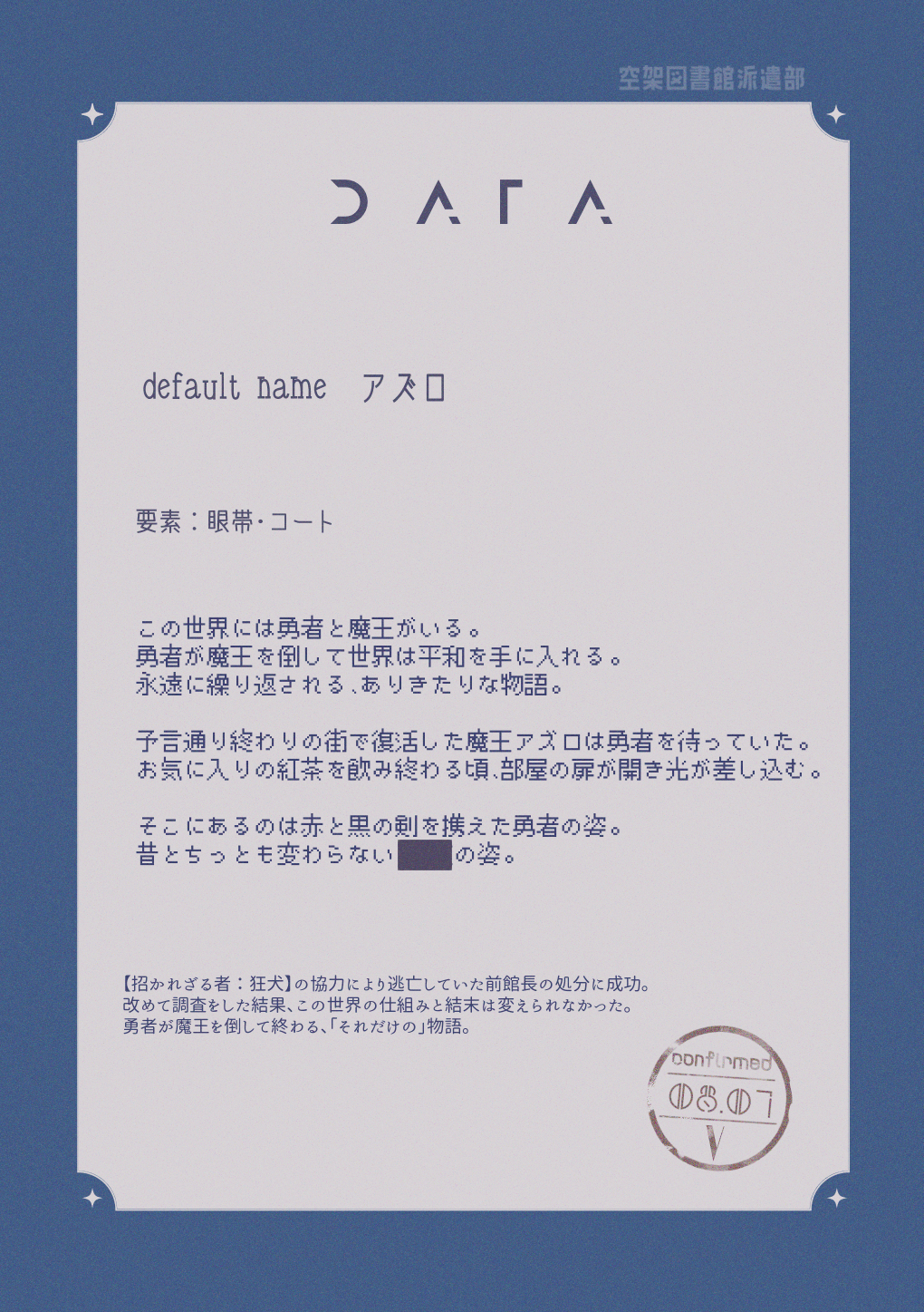 あまりにも簡素なその物語に、アズロは満足していた。